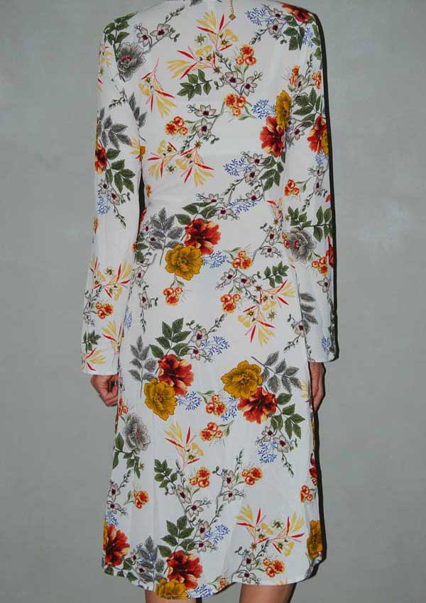 שמלה בצבע קרם עם פרחים גדולים ריץ' רץ' בצד וקשירה במותן