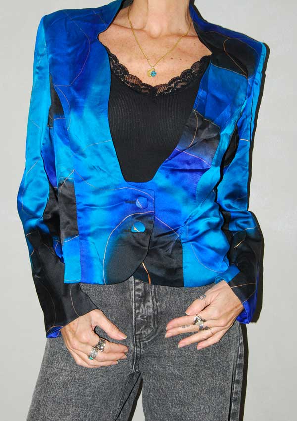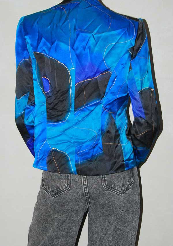 חולצת וינטג' ישראלי בצבעים כחול-שחור-טורקיז-זהב עם כפתורים מיוחדים