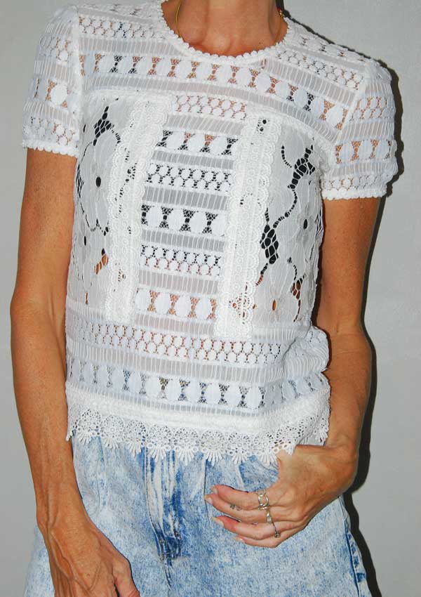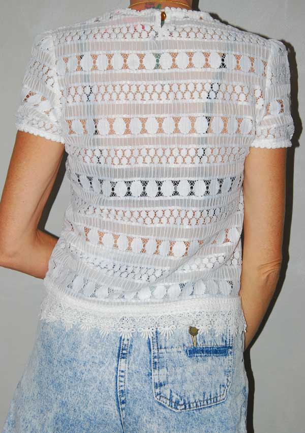 חולצת ג'יפסי חמודה משולשת מקדימה עם פרחים רקומים בצבעי כחול גומי בכתפיים וגב פתוח