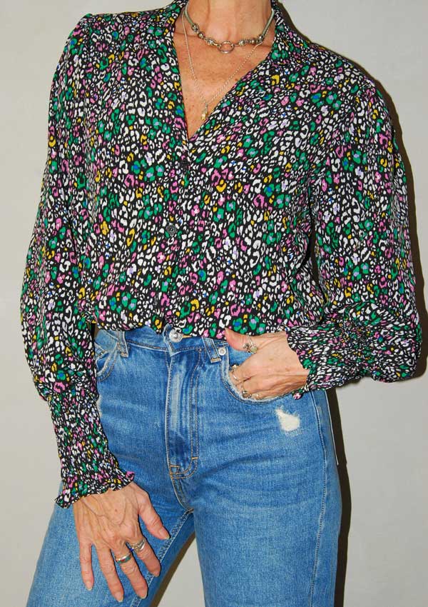 חולצה חמודה עם שרוולים מנופחים וכתמי צבע של ירוק לבן ורוד TOPSHOP