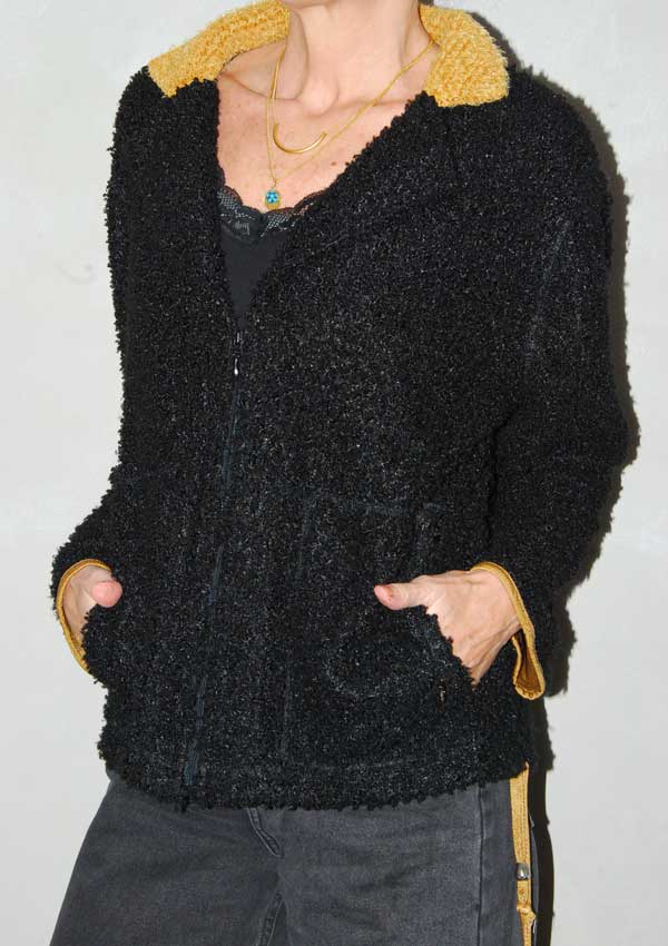 ז'קט פלאפי בצבע שחור וחום עם כיסים של רעומה