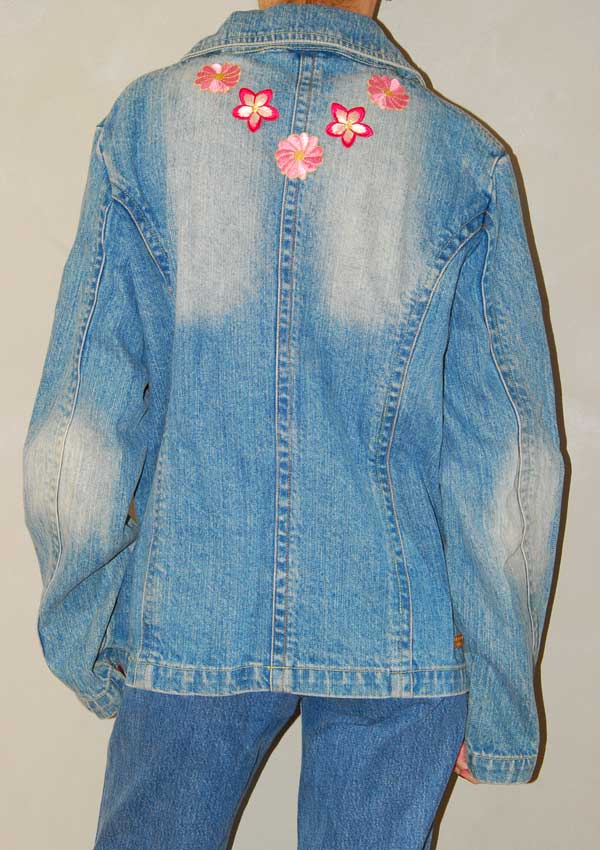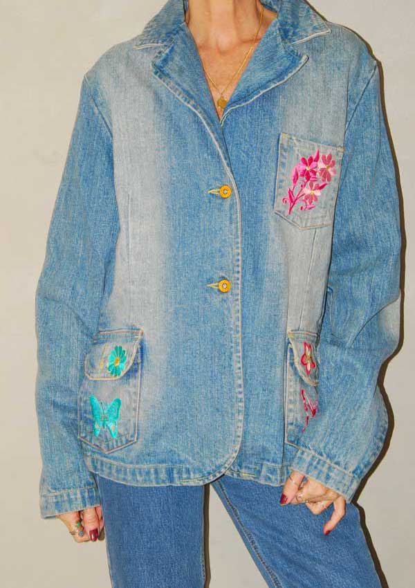 ז'קט ג'ינס משנות ה-90 עם פרחים רקומים בכיסים