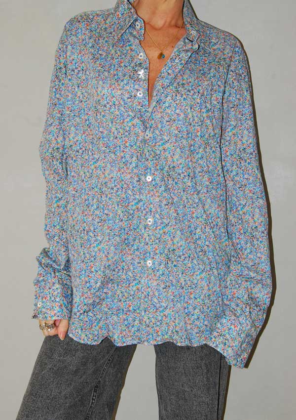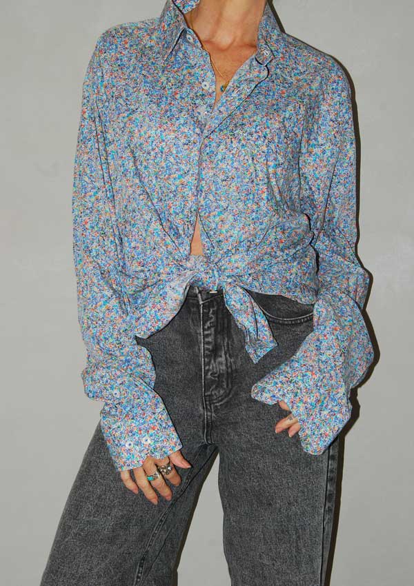 חולצה מכופתרת פרחונית שניתנת ללבישה בכמה צורות