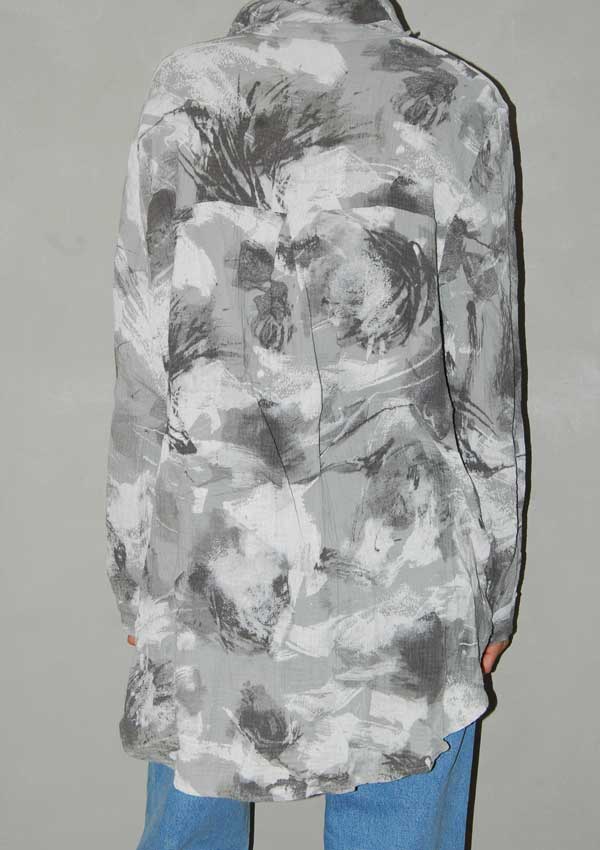 חולצה MADE IN ITALY בצבע אפור עם ציורים ומריחות צבע של עלים וצורות, מכופתרת