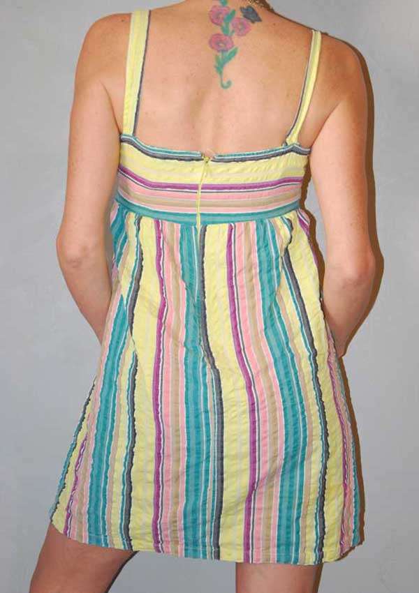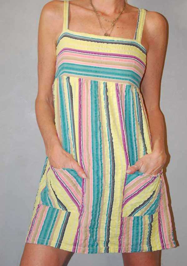 שמלת קיץ הכי קיצית שיש פסים צבעוניים וכיסים מקדימה