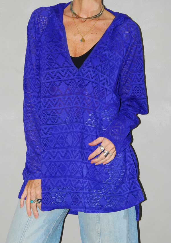 חולצת רשת בצבע כחול רויאל עם קפוצ'ון