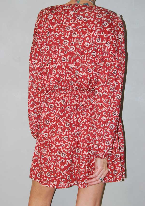 שמלה חמודה בצבע ירוק עם פרחים קטנים כפתורים בחלק העליון OVERSIZED