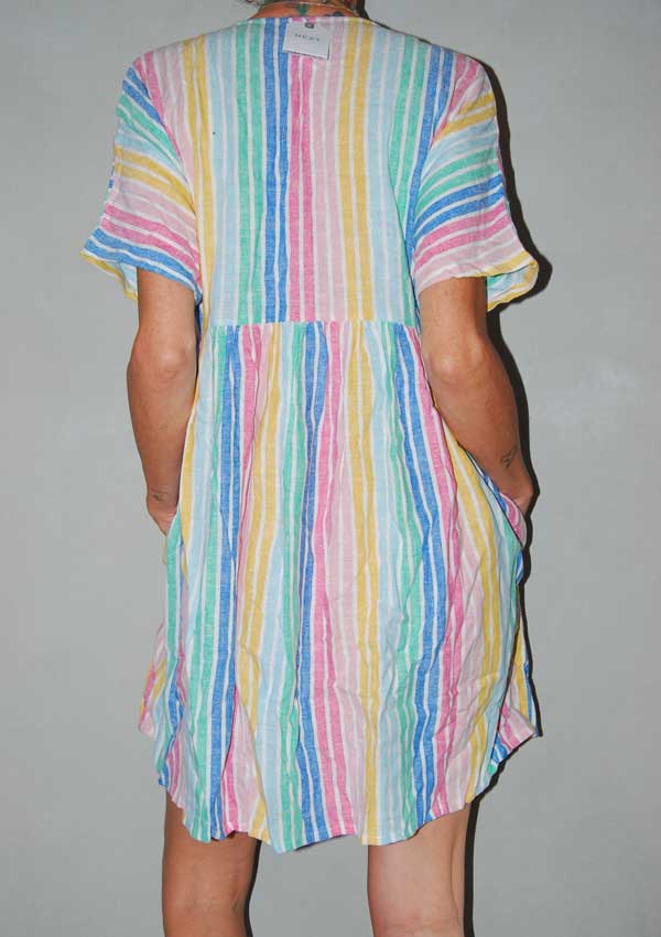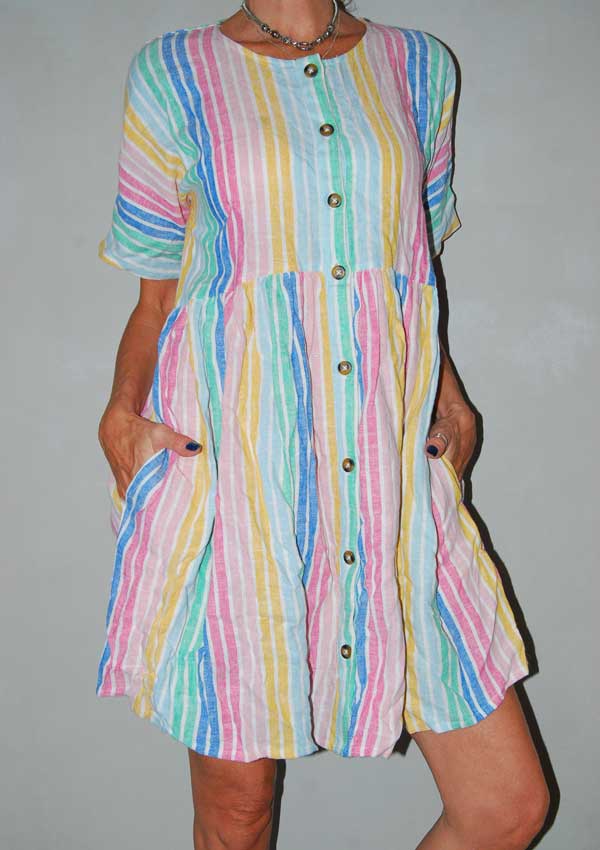 שמלת כותנה מושלמת עם פסים צבעוניים כפתןרים לאורך הקדימה וכיסים בצד, חדשה טיקט NEXT