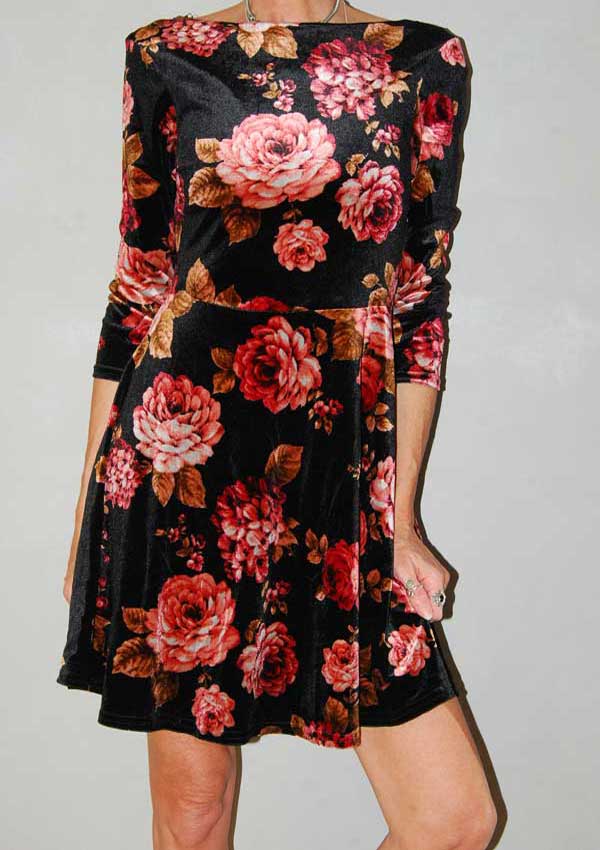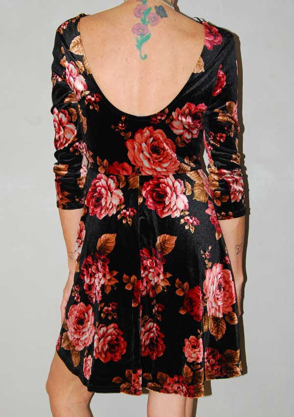 שמלת קטיפה מושלמת עם ורדים גדולים ומפתח יפה בגב