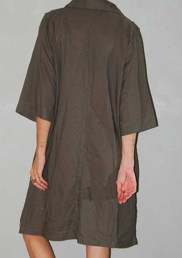 שמלה קלילה וחמודה בצבע חום עם כפתורים מקדימה וכיסים בחלק העליון