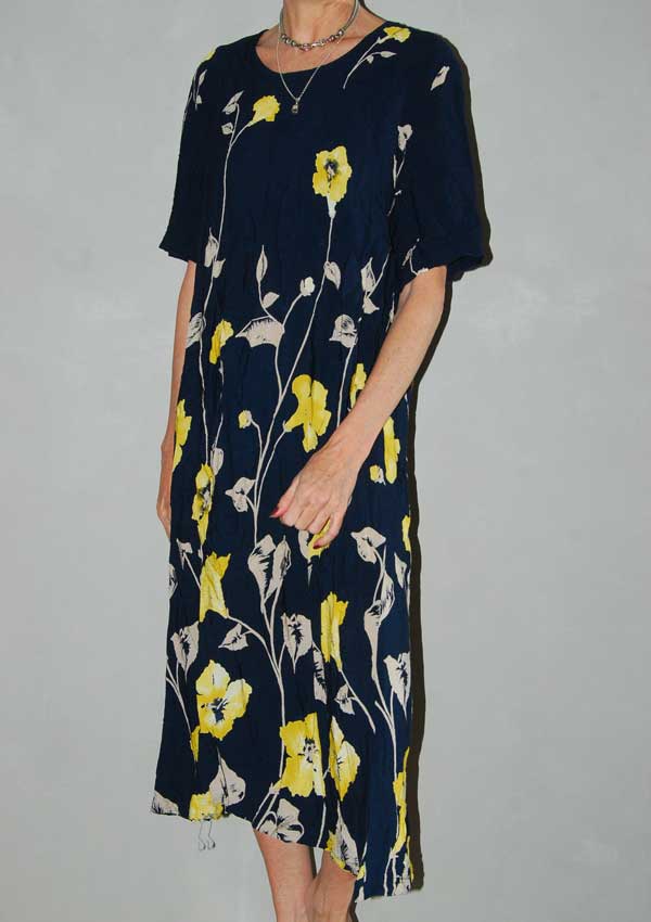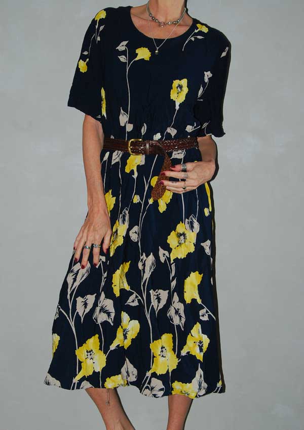 שמלת וינטג' בצבע כחול כהה עם פרחים גדולים