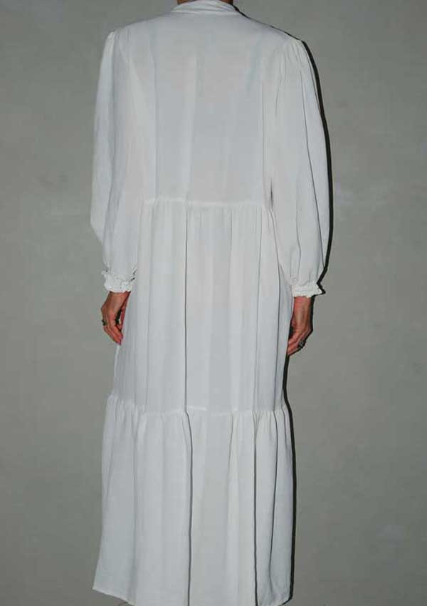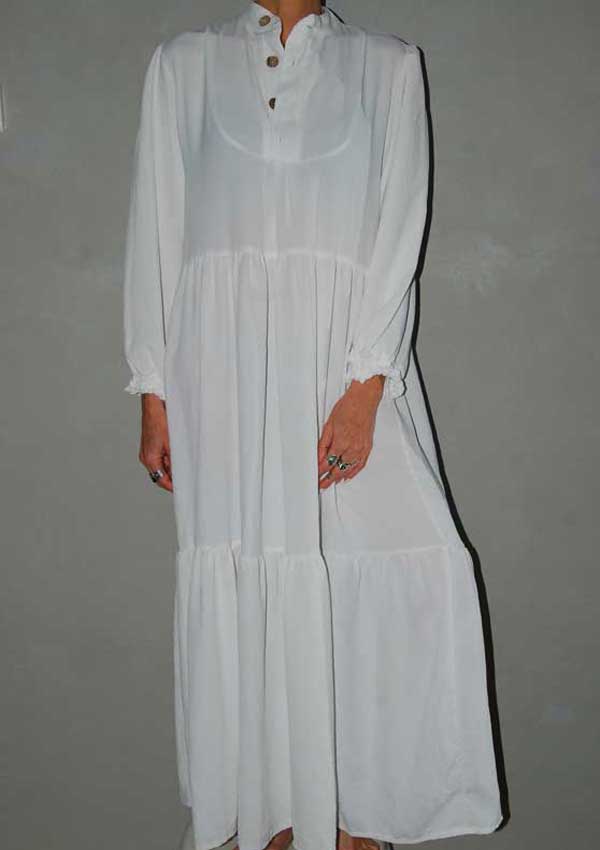 שמלה לבנה רחבה תהיה טובה למידות S-L כפתורים בחלק העליון, קצת שקופה יותר בחלק העליון