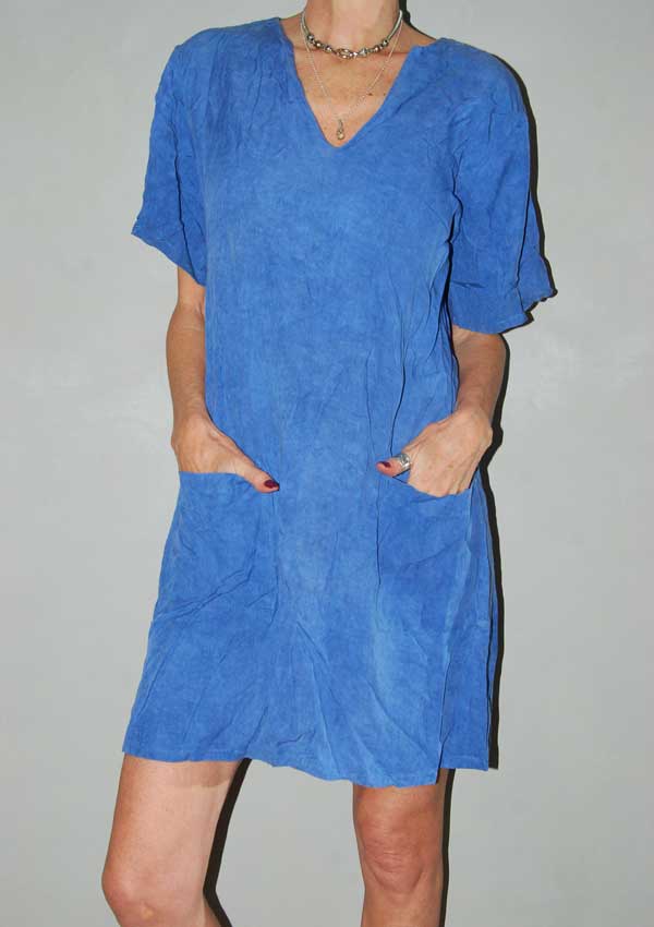 שמלה קלילה ודקיקה בצבע ג'ינס עם כיסים גדולים מקדימה מידה רשומה 1 - תהיה טובה S-M
