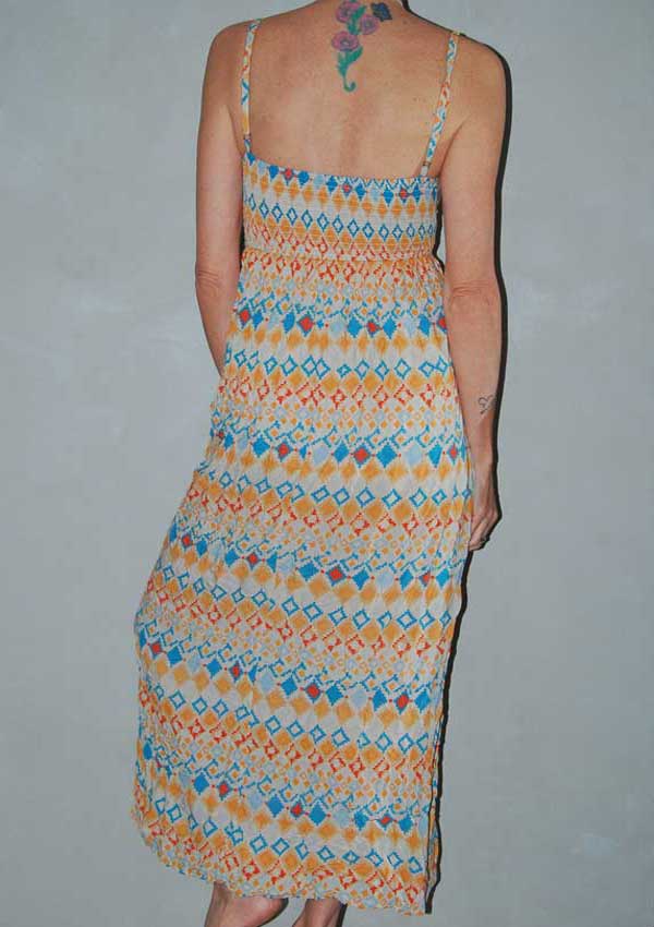 שמלת וינטג' מגניבה ומיוחדת ובאמת אחת במינה משנות ה-70, תפורה ביד עם צבעים ובד משגע, כפתורים וריץ' רץ' לסגירה בגב