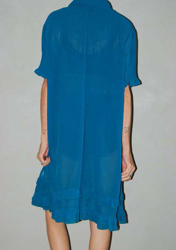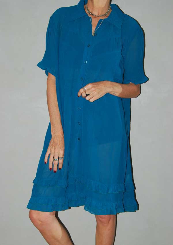 שמלה CALA צבע משגע ירוק פטרול כפתוריםצ לאורך הקדימה, שקופה