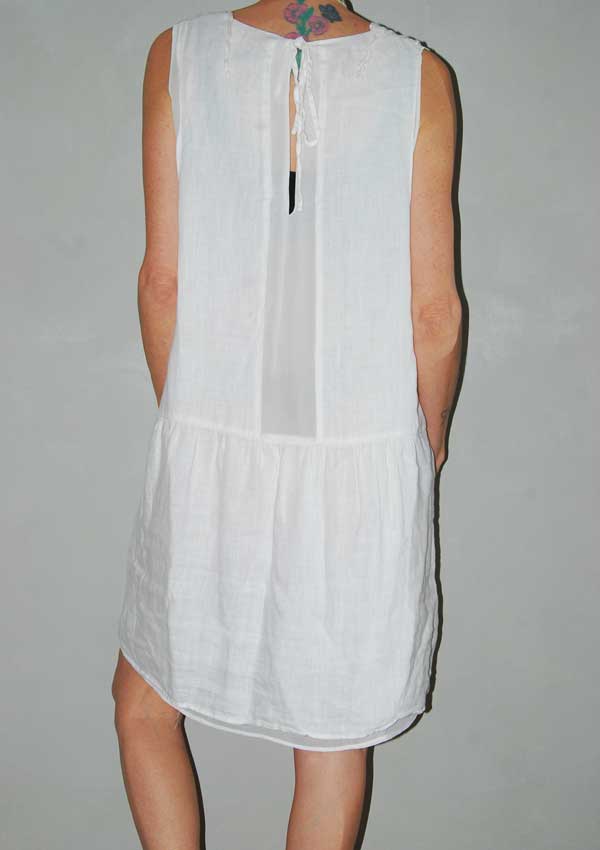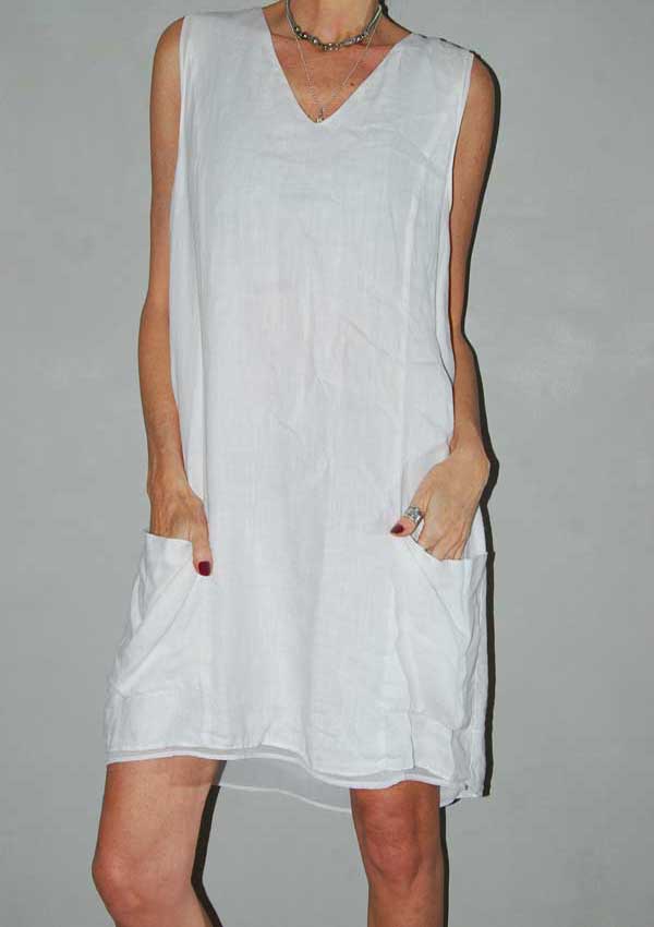 שמלת כותנה לבנה חמודה עם כיסים גדולים מקדימה