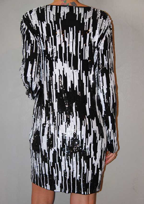 שמלת מסיבות מושלמת עפ פאייטים שחורים-לבנים בד גמיש מאוד MICHAEL KORS מידה רשומה P/L שזה PETITE LARGE תהיה טובה למידות S-L שימו לב להיקף מותן למעלה