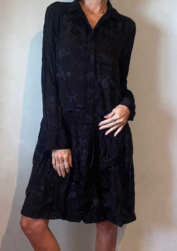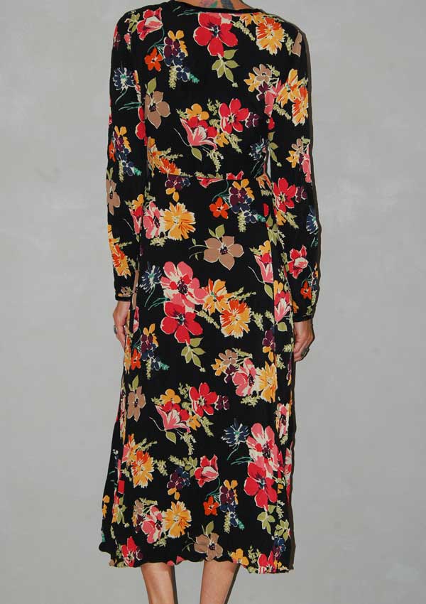 שמלה שחורה של J.CREW עם פרחים שחורים מוטבעים בבד וכפתורים לאורך הקדימה OVERSIZED