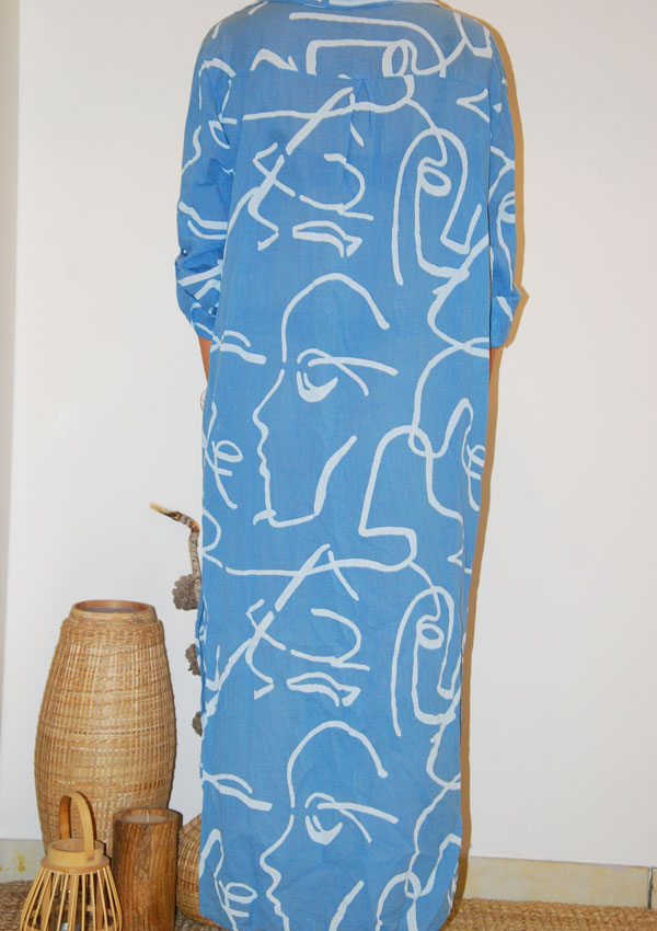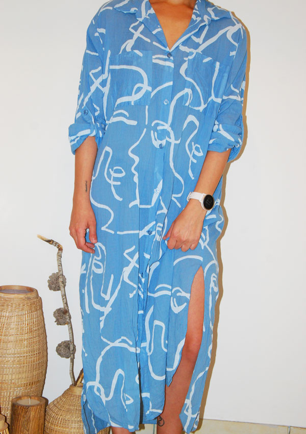 שמלת מקסי ג'ינס עם צורות לבנות קלילה ונעימה כפתורים מקדימה שסע בצד, סטייל גלביה