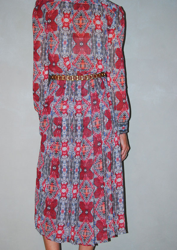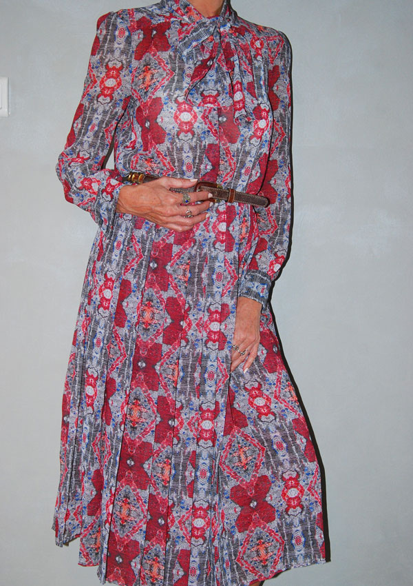 שמלה פליסה מהממת של & other stories עם צורות וצבעי בורדו כחול שחור לבן, קשירה בצוואר כפתורים מקדימה בחלק העליון