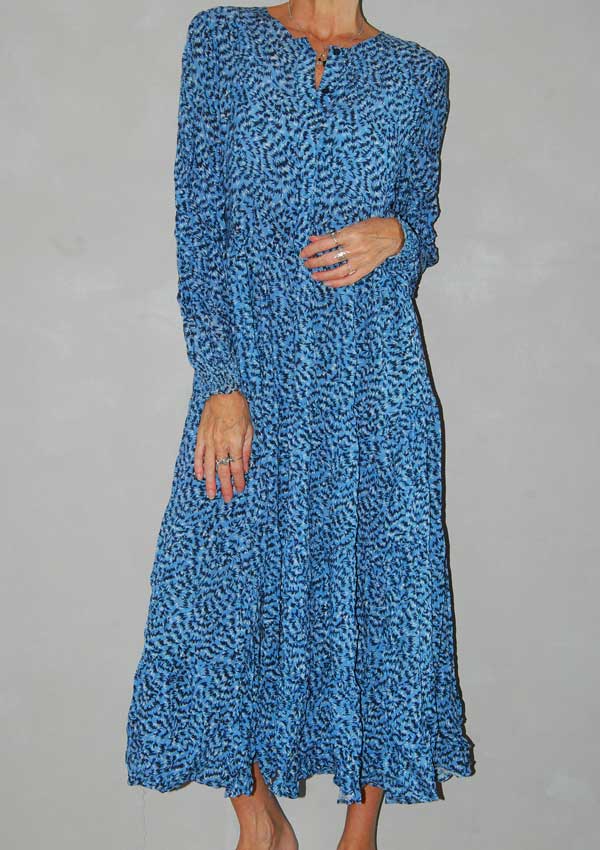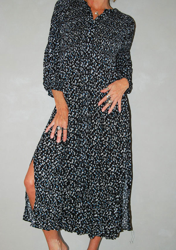 שמלת מקסי מנומרת חמודה עם כפתורים לאורך הקדימה