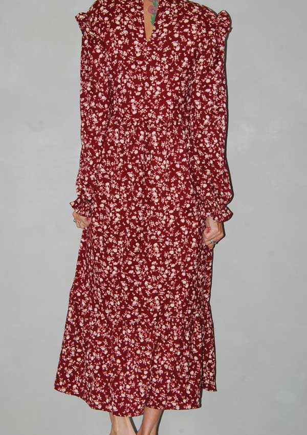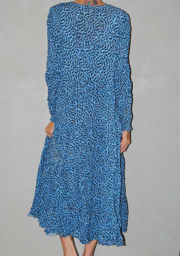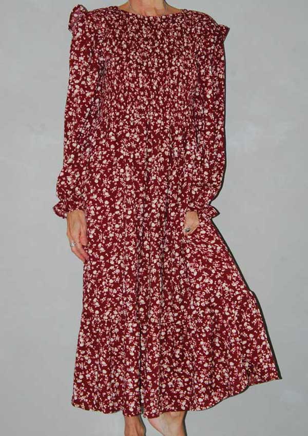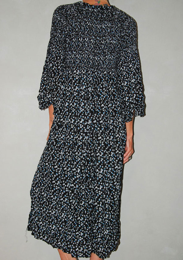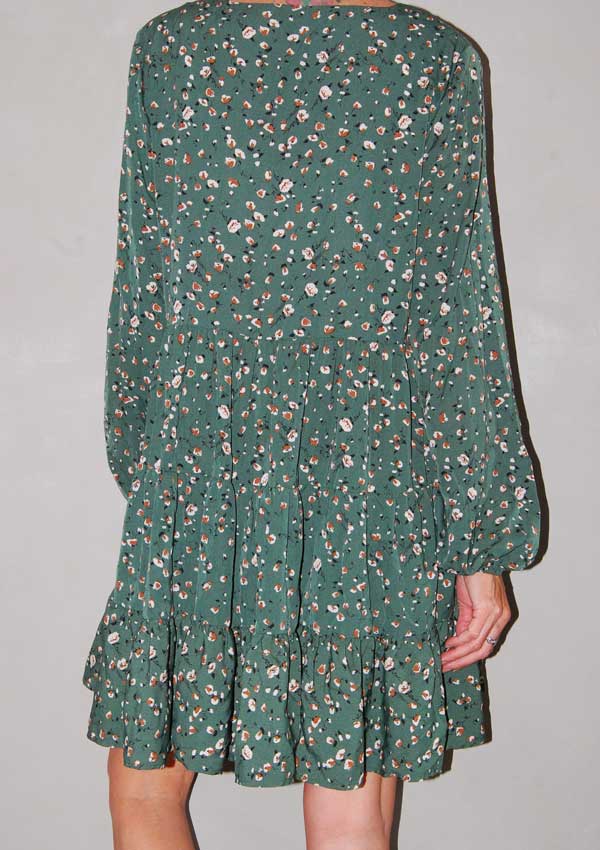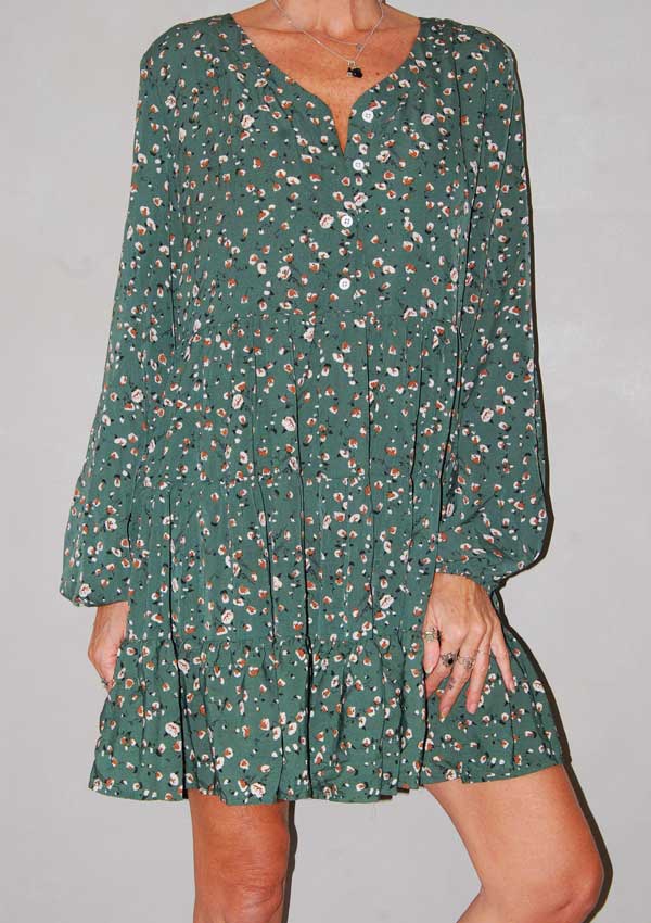 שמלת פרחים קטנים וחמודים כפתורים לאורך הקדימה בד אקורדיון בחלק העליון