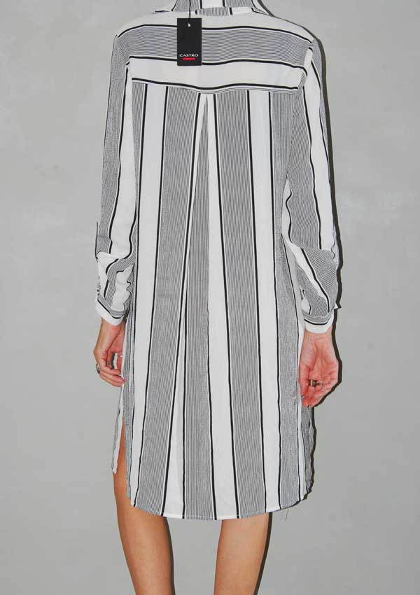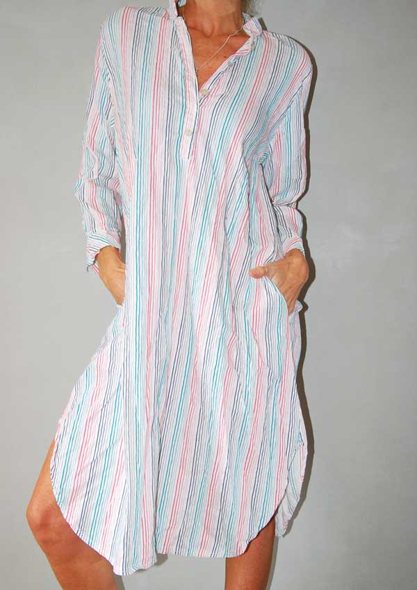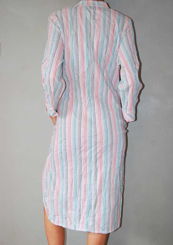 שמלת פסים משגעת, לבנה עפ פסים צבעוניים כפתורים מקדימה של COTTON