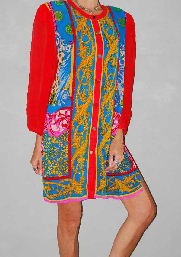 שמלת וינטג' משנות ה-80 מיוחדת ויפה עם צורות וכפתורים מיוחדים