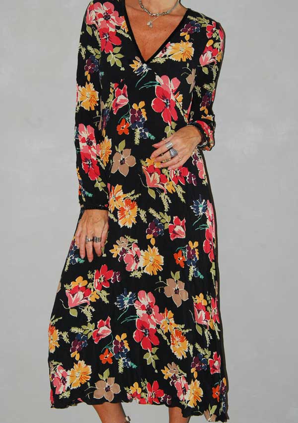 מקסי שחורה עם פרחים גדולים וצבעוניים