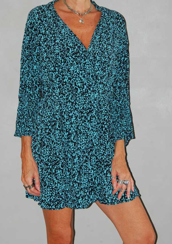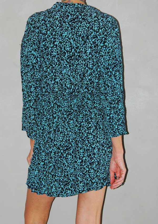 שמלה מנומרת חמודה בצבע טורקיז שחור