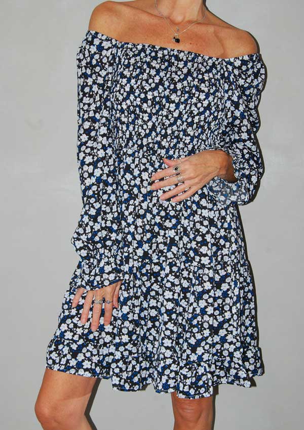 שמלת BOHO CHIC עם צורות ופרחים חמודה וקלילה