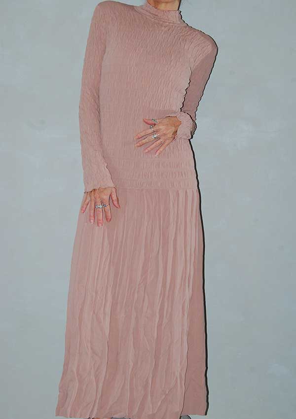 שמלה כיפית נעימה בצבע ורוד עתיק עם עלים ופרחים OVERSIZED