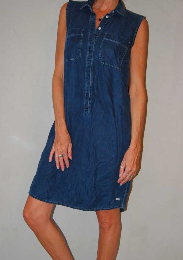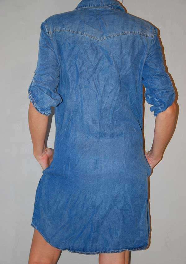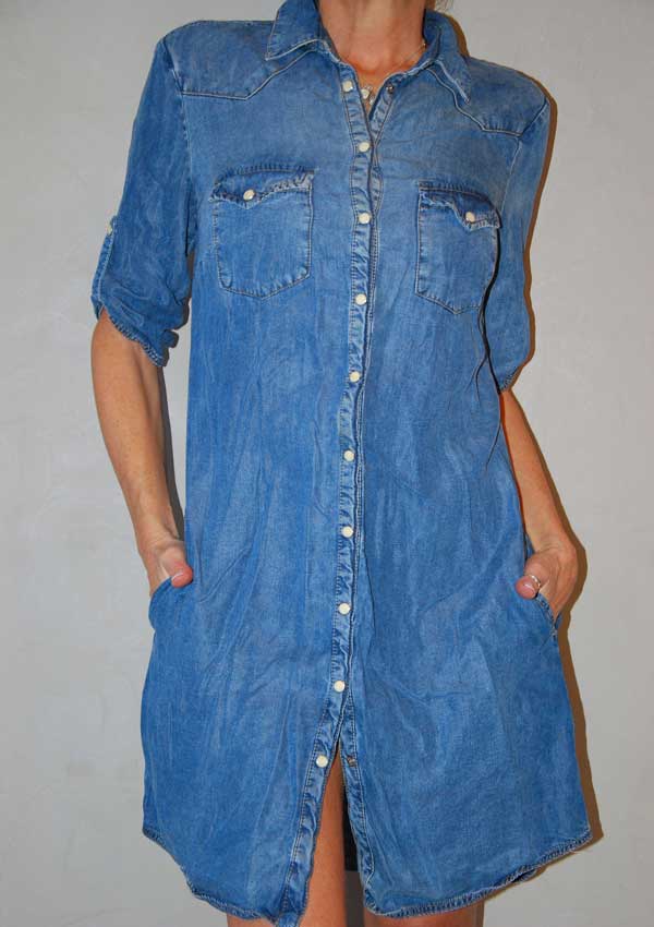 שמלת ג'ינס כיפית וקלילה עם כפתורי תיקתק כיסים בצד ומקדימה