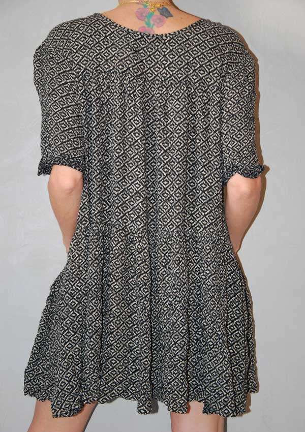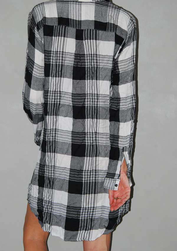 טוניקה / חולצה / שמלה (למידות קטנות יותר) וינטג' ישראלי משנות ה-90, משובצת שחור-לבן עם כפתורים מקדימה