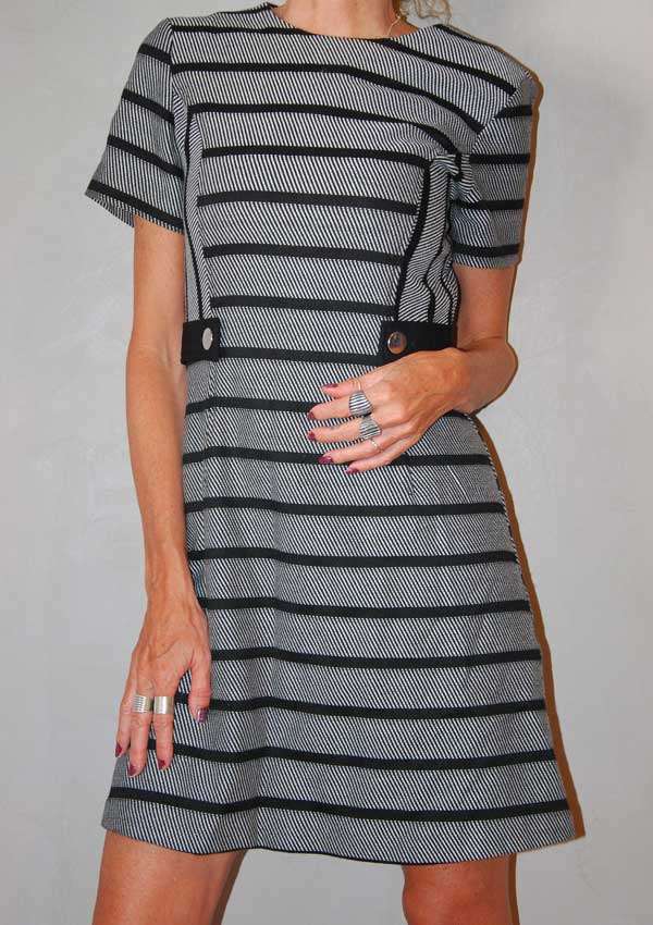 שמלת פסים שחור-לבן אלגנטית ויפה בד עבה כיאה למותג אנגלי OASIS