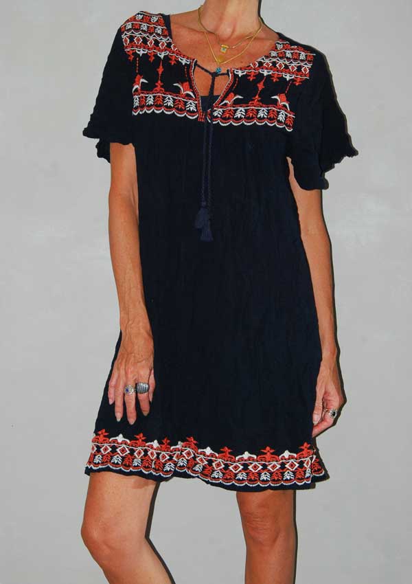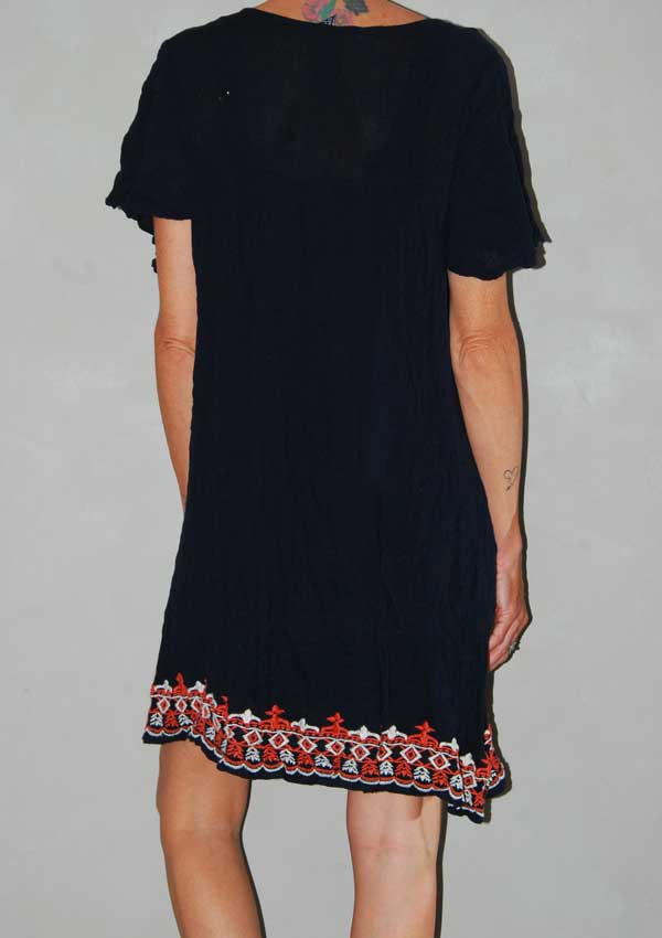 שמלה מהממת שחורה עם פרחים רקומים וצבעוניים