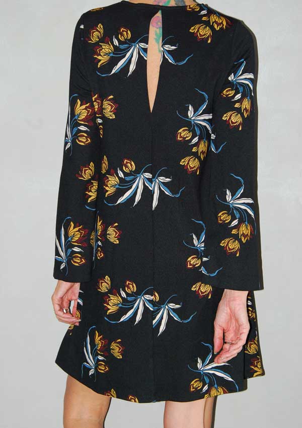 שמלת OVERSIZED כיפית ונעימה של MANGO כיסים מקדימה שחורה עם צורות קטנות בצבע קרם