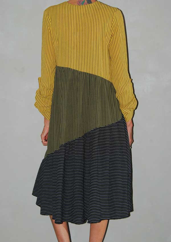 שמלה אסמיטרית מגניבה שחורה לבנה צורות של יעל צור