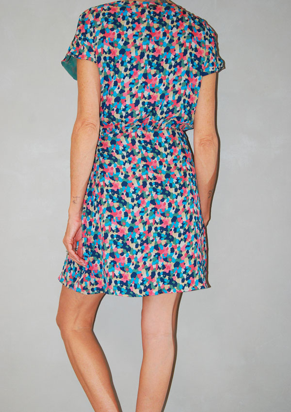 שמלה צבעונית עם כתמי צבעים PEPE JEANS שסע מקדימה וקשירה