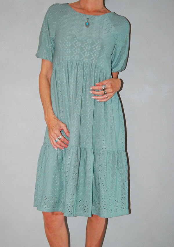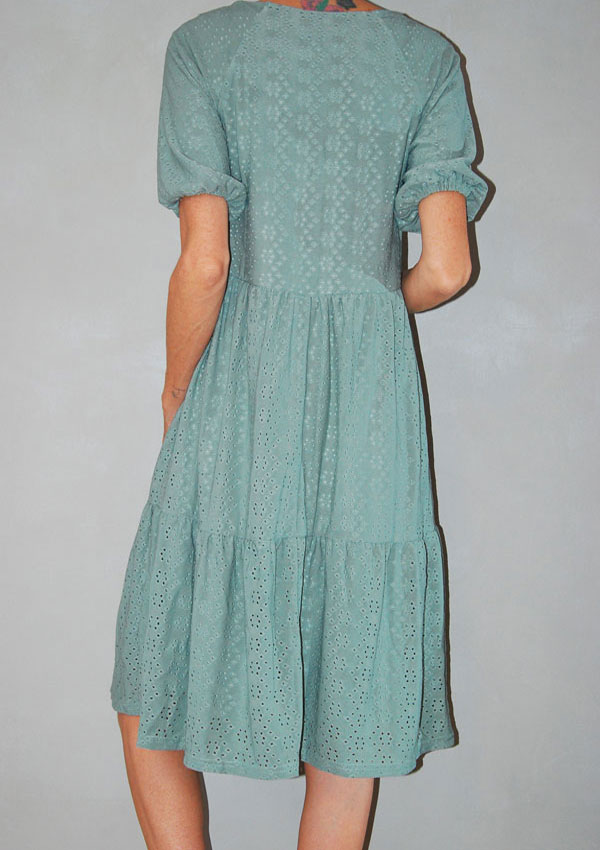 שמלת שלבים מחוררת פרחים בצבע מנטה