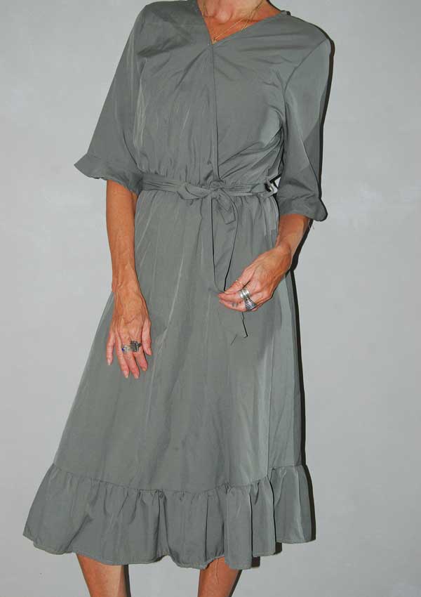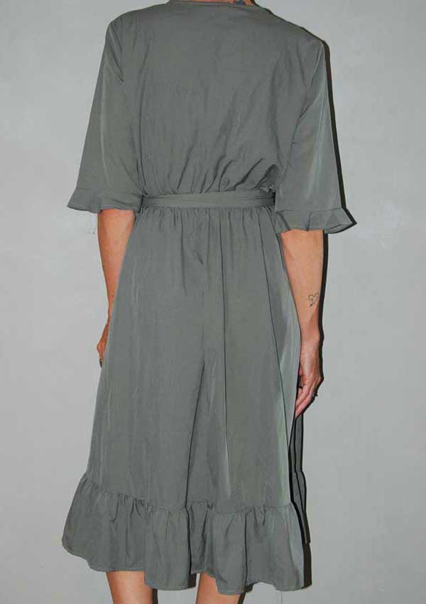 שמלת חמודה בצבע חאקי גומי וקשירה במותן