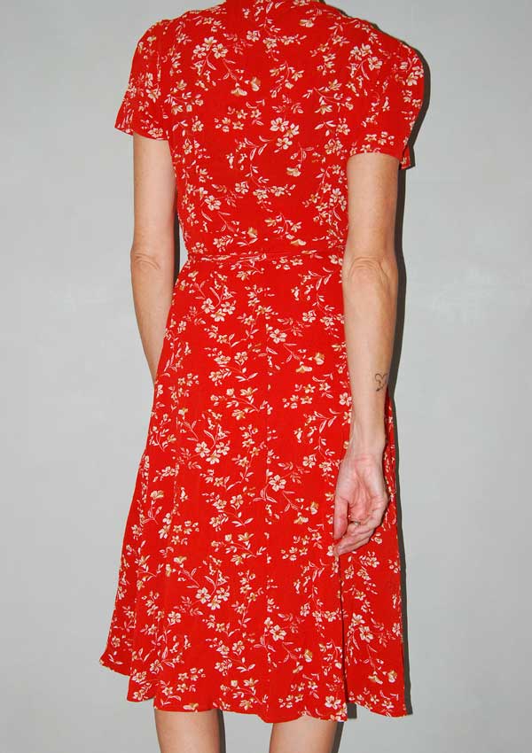 שמלת מעטפת אדומה עם פרחים לבנים קטנים מחמיאה וחמודה