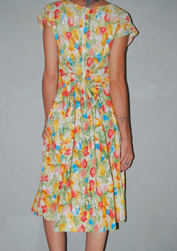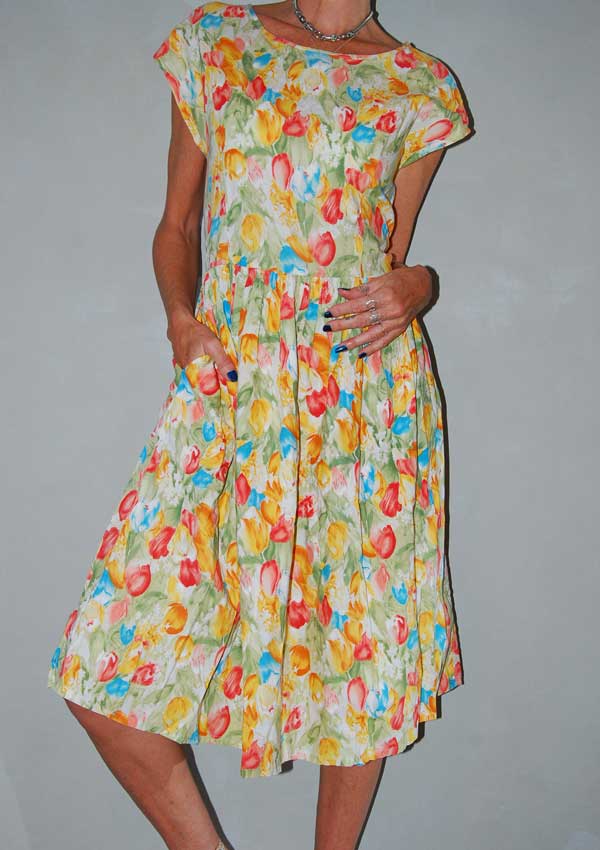 שמלת וינטג' פרחונית וצבעונית משנות ה-70 חמודה עם ריץ' רץ' בגב וכיס אחד בצד