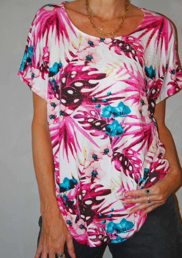 חולצה פרחונית חמודה עם גומי בכתפיים