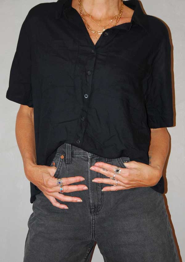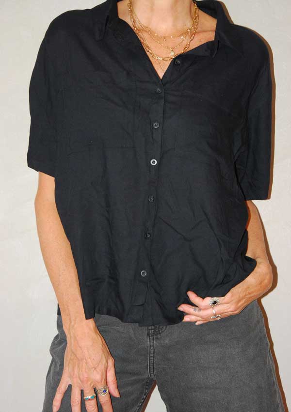 חולצה מכופתרת שחורה וחמודה ממש שהולכת עם הכל