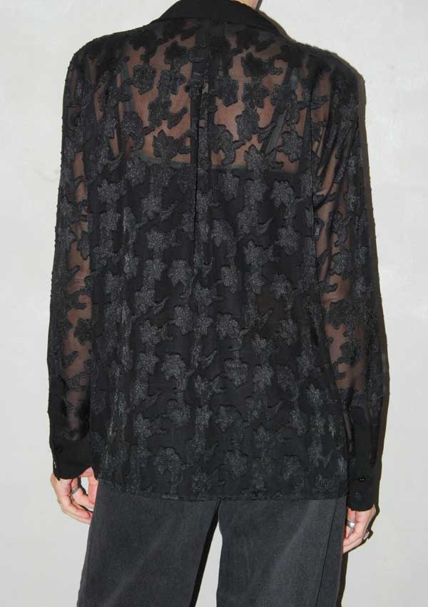 חולצה מכופתרת עם פרחים. שקופה