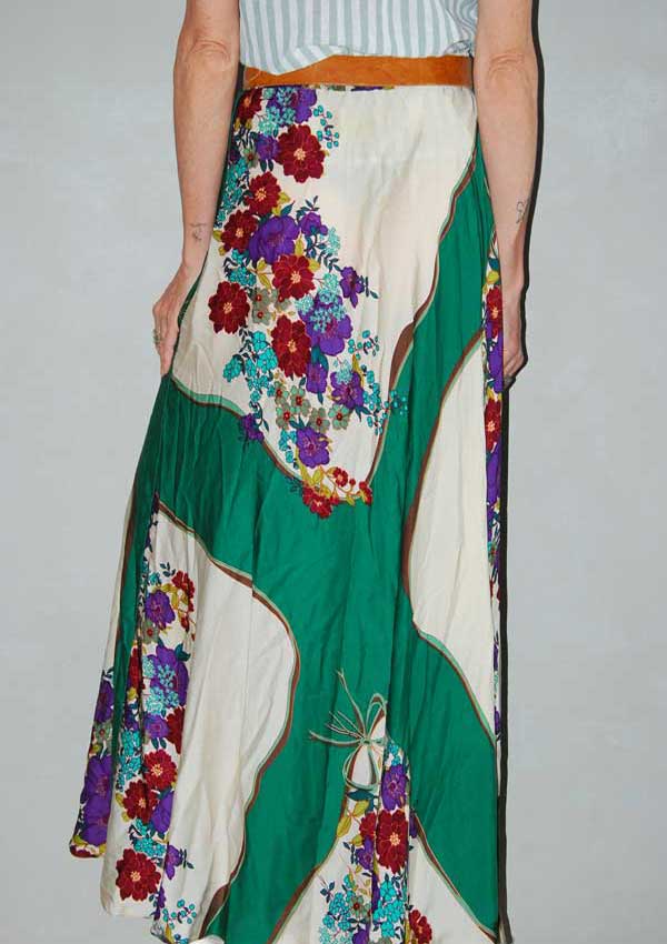 חצאית מקסי עם פרחים גדולים גומי בחלק העליון