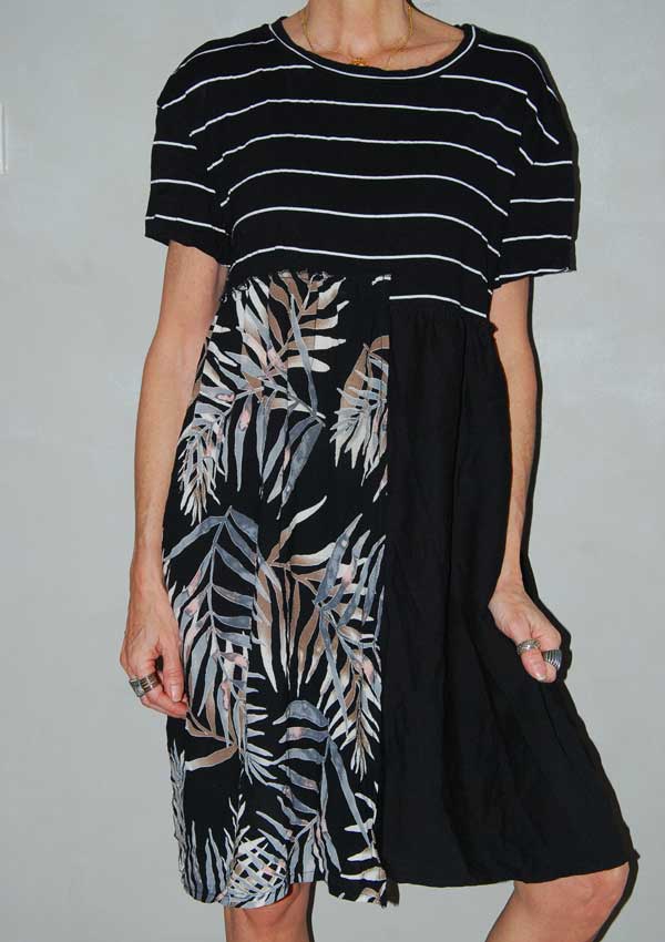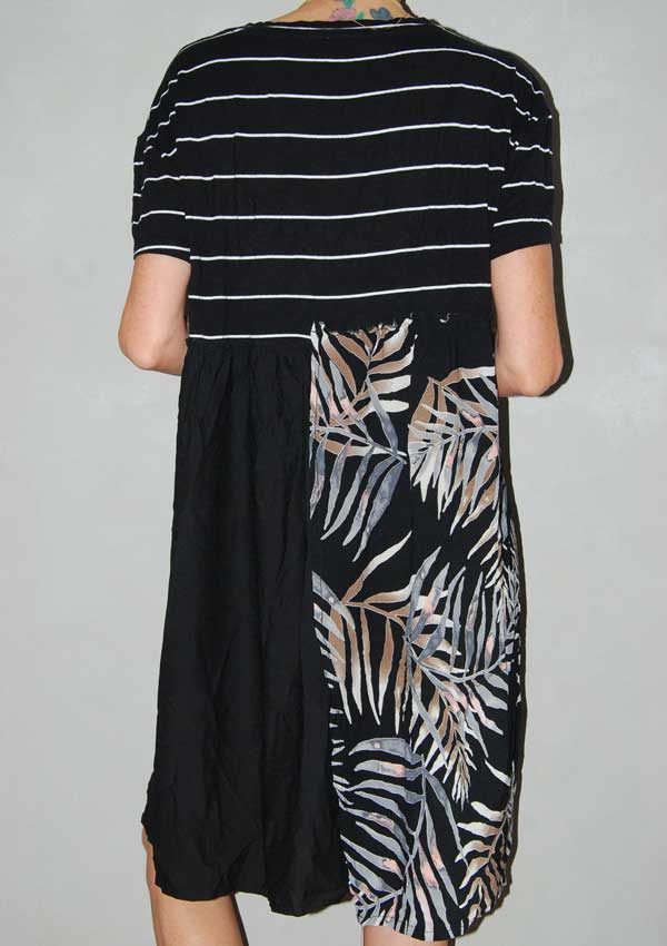 שמלת OVERSIZED חמודה פסים בחלק העליון ענפים בחלק החצי התחתון שחור חלק בחצי השני