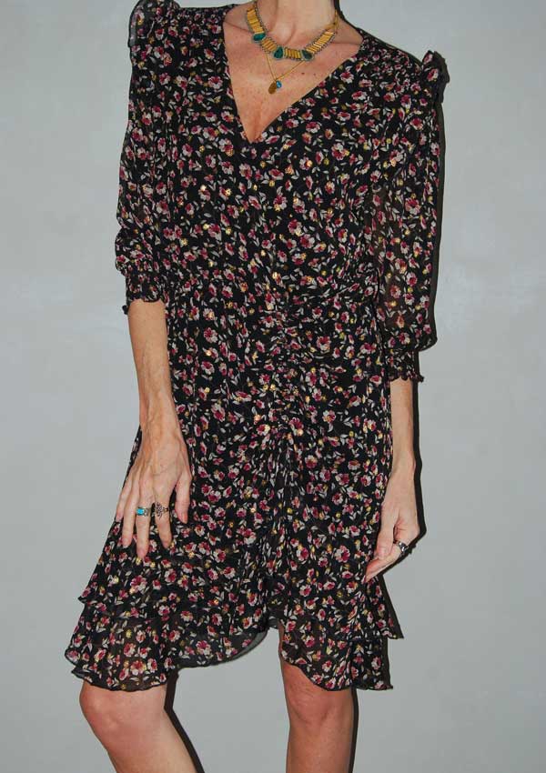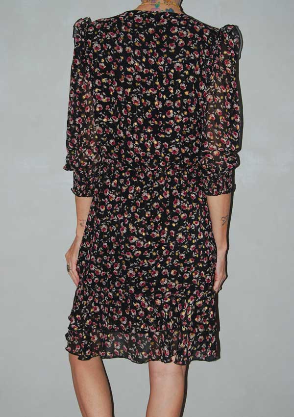 שמלה שחורה עם פרחים קטנים גומי במותן רנואר