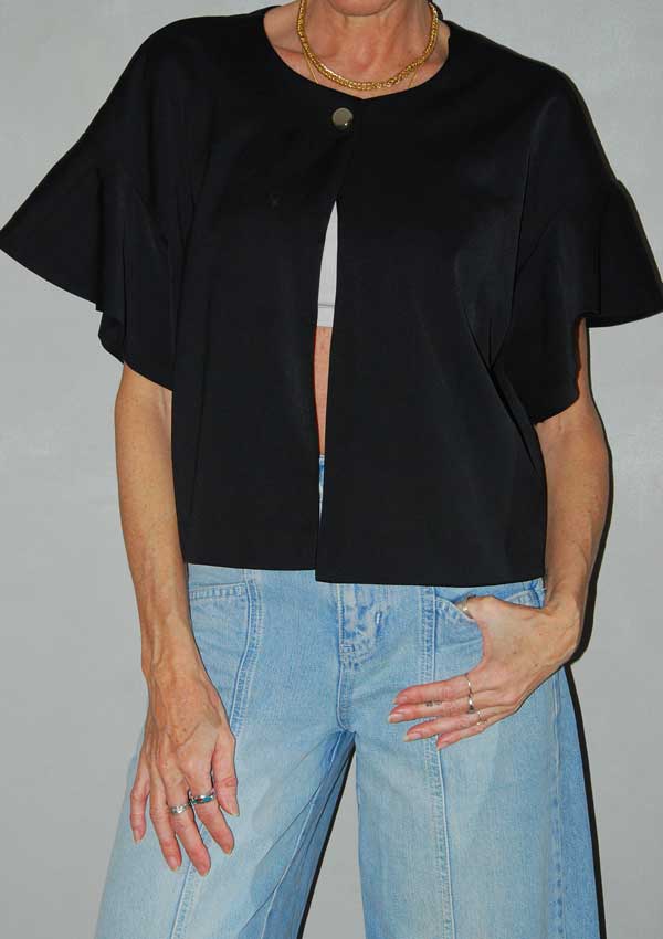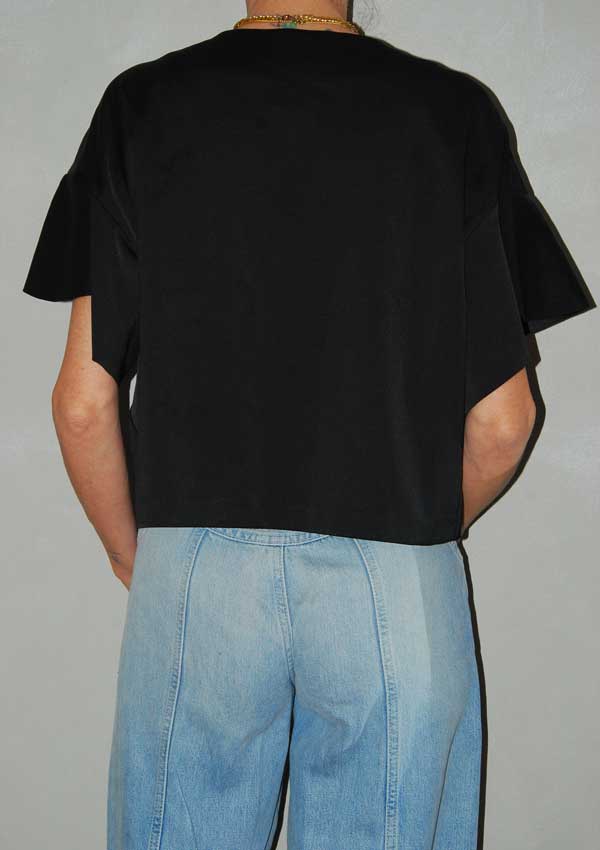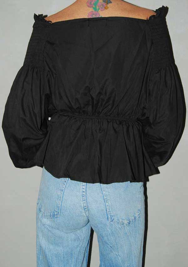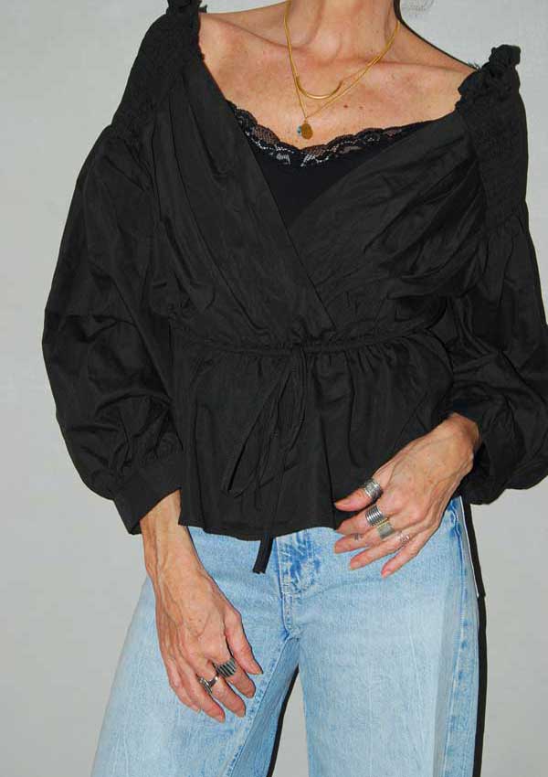 חולצה שחורה מיוחדת עם פתח רחב מקדימה גומי וקשירה במותן